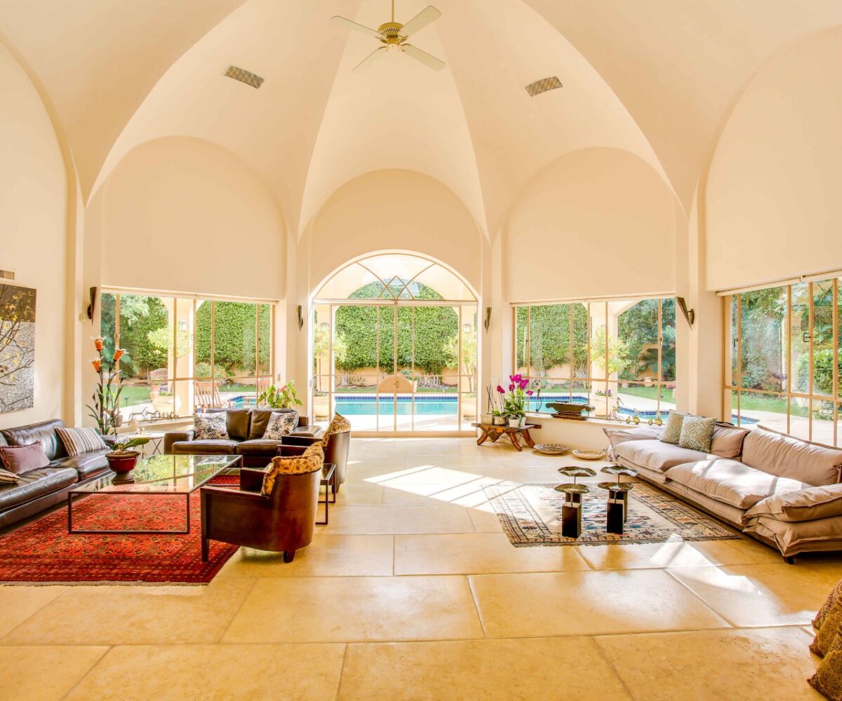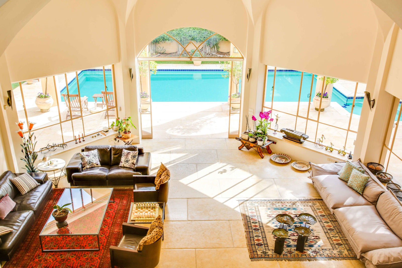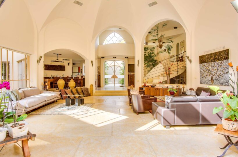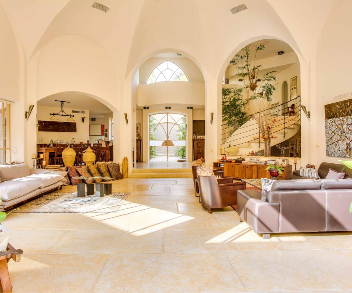 וילה מרהיבה ביופיה שלא ניתן להסביר במילים, מרכז האירוח בבית משקף את היכולת להכניס את החוץ אל הפנים במשקל יופי מושלם, חלונות בלגיים מלווים את חלל הבית לכל אורכו.