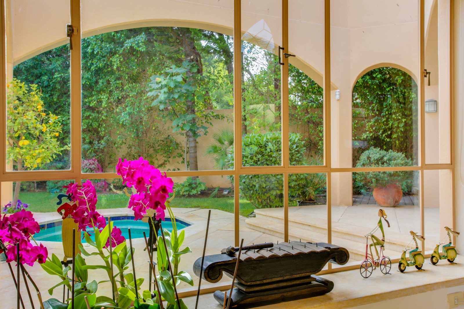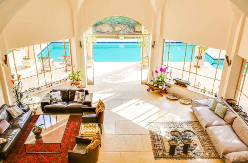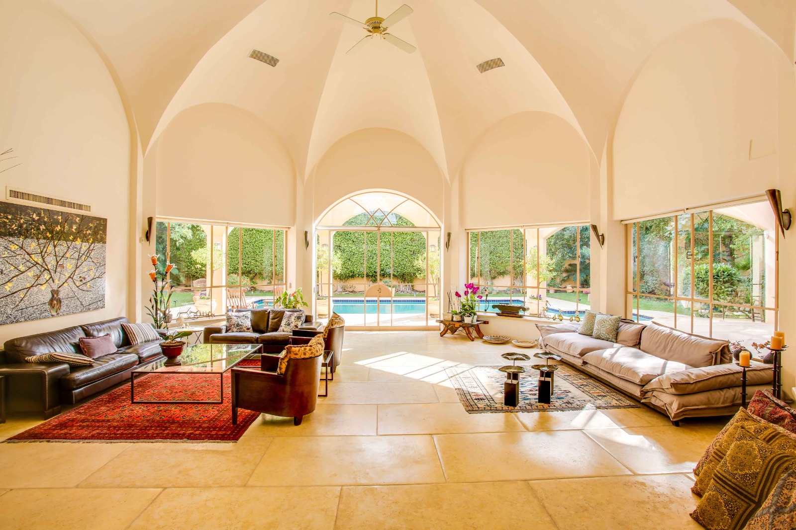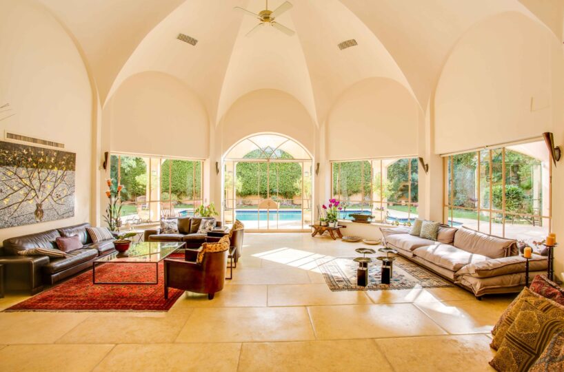 וילה מרהיבה ביופיה שלא ניתן להסביר במילים, מרכז האירוח בבית משקף את היכולת להכניס את החוץ אל הפנים במשקל יופי מושלם, חלונות בלגיים מלווים את חלל הבית לכל אורכו.