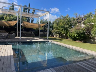 פונים לאזור הבריכה וגינה מעוצבת,גינה מעוצבת משלבת בתוכה עצי פרי רבים,אבוקדו,פרי הדר,מנגו,אקליפטוס טרולי בוגרים,בריכת השחייה מבטון,משולבת סביבה דק,פינות מוצלות,פרגולה חיצונית.מטבח מעוצב פונה לאזור הגינה,אבן טבעית לאורכה של ריצפת הכניסה,תקרה גבוהה,חדר נוסף פלוס שירותי אורחים בקומת הכניסה,בקומה העליונה 4 חדרי שינה,מתוכם 3 סיוטות