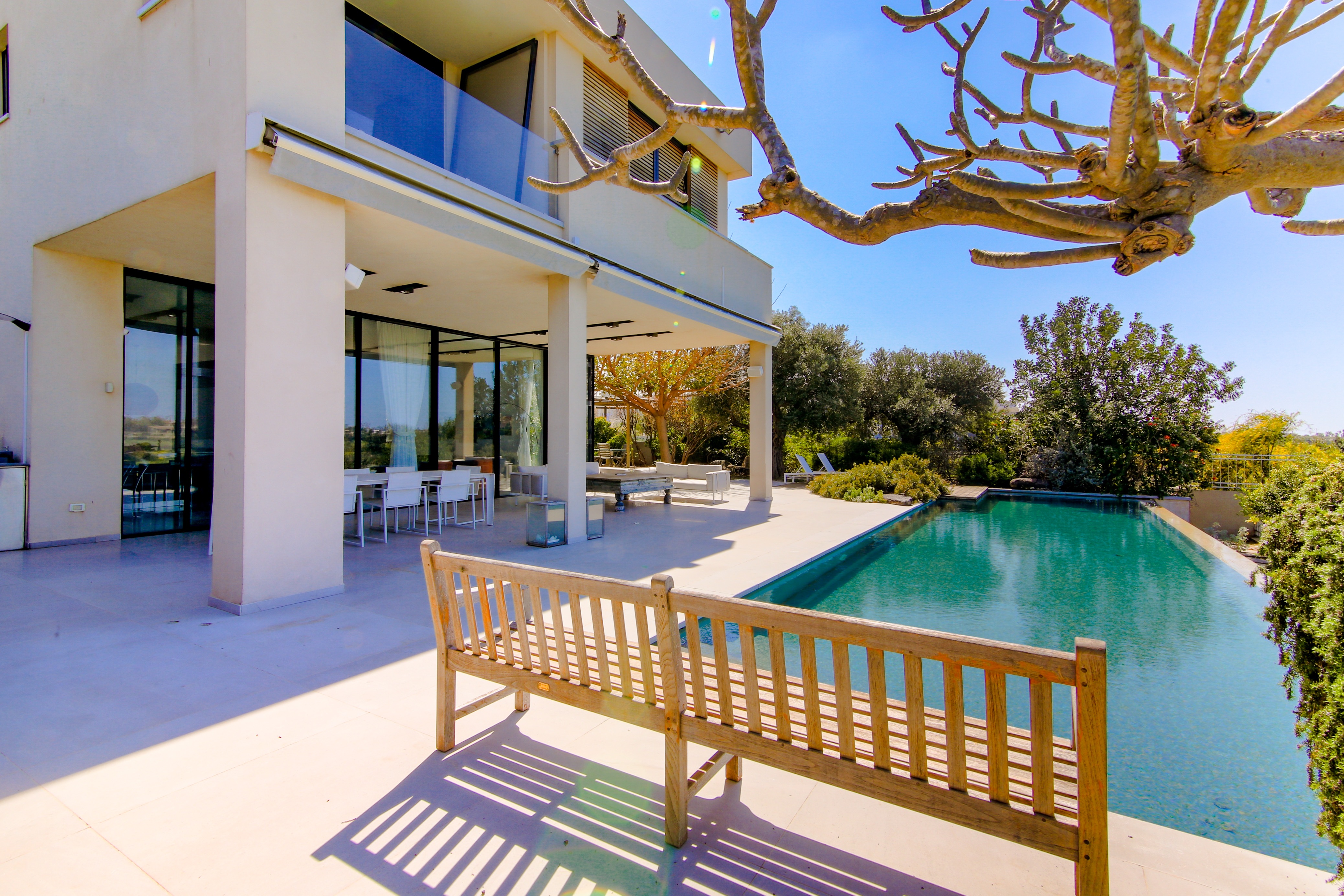 וילה במגמה מודרנית, נקיה ומנימליסטית לצד חומרים גולמיים -אבן, עץ, שמחממים את האוירה